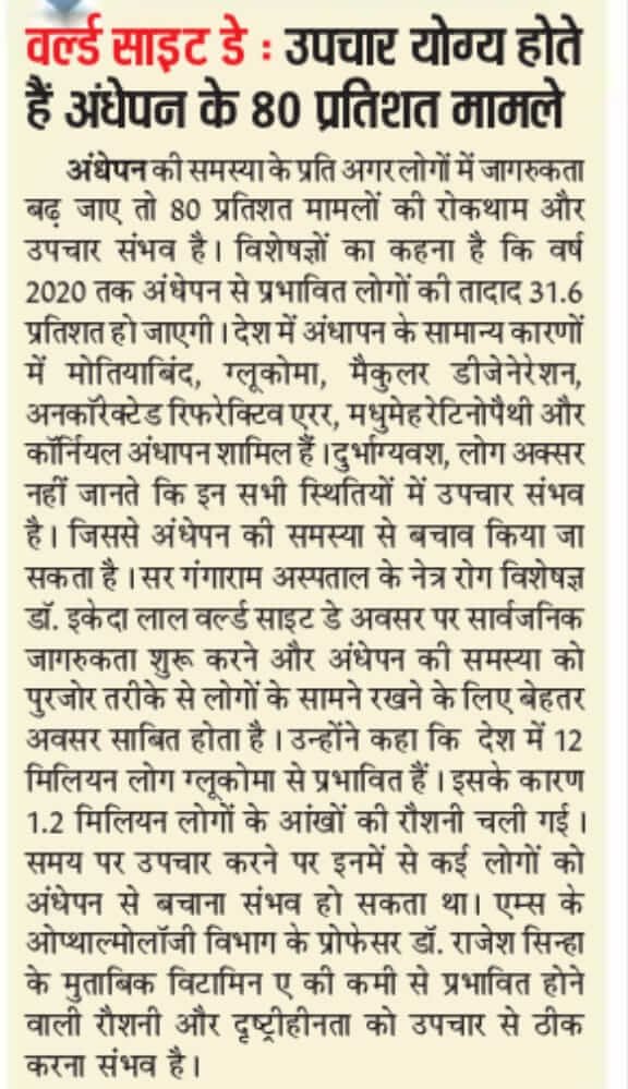 World Sight Day Thursday, 11 October – The most important advocacy and communications event on the eye health calendar. It is a great time to engage with the world around us – a patient’s family, those who seldom get an eye exam, diabetics. This year, let us draw attention to eye care issues so that everyone, everywhere has access to good eye health. Plan for an eye examination. Look around in your family, especially for those who are vulnerable: young, school-going children, the elderly, those with diabetes.